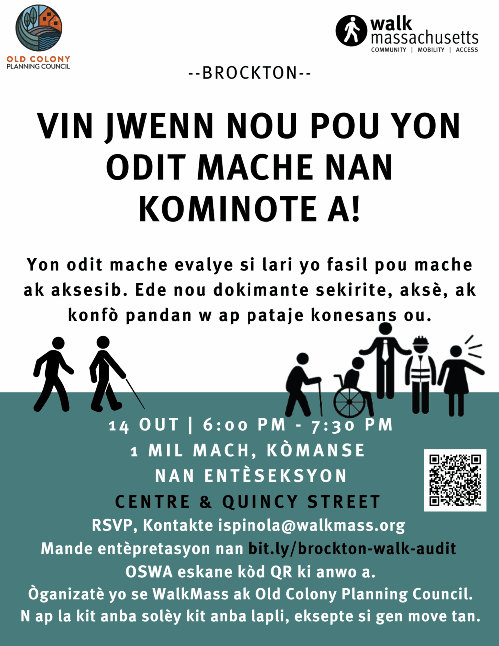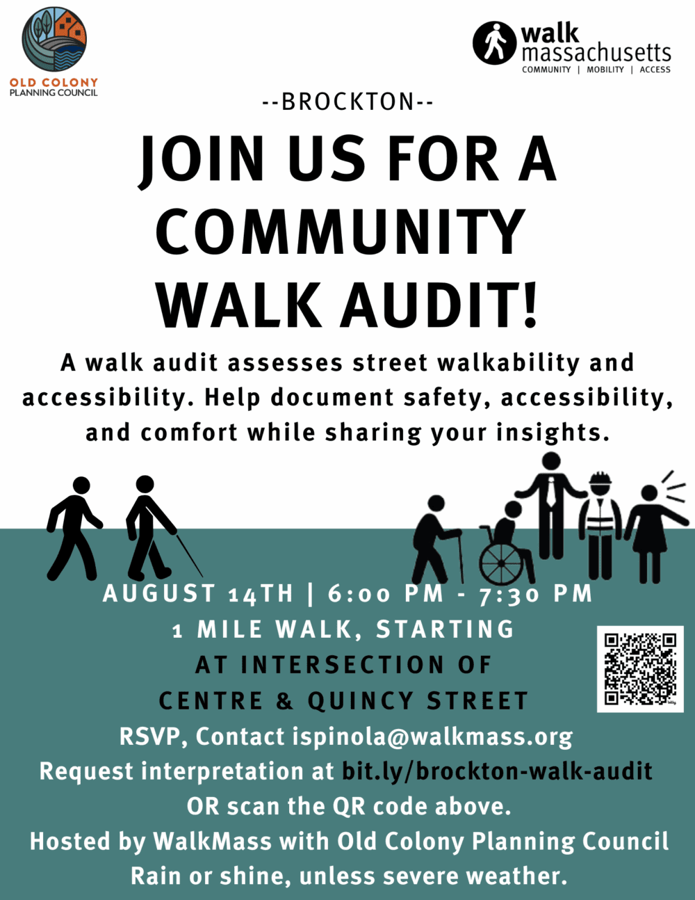 « All Events This event has passed. Community Walk Audit August 14, 2025 @ 6:00 pm - 7:30 pm « BHS School Building Committee Meeting Brockton Night at the Brockton Rox » Thursday, August 14 6:00-7:30 pm Intersection of Centre and Quincy Streets. Add to calendar Google Calendar iCalendar Outlook 365 Outlook Live Details Date: August 14, 2025 Time: 6:00 pm - 7:30 pm Event Category: Local Event Tags:Community Venue 250 Crescent Street, Brokton MA 250 Crescent Street Brockton, MA United States + Google Map Submit your own event to the calendar!Submit your own event to the calendar!