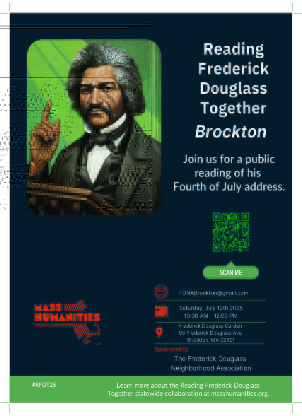 Be part of a powerful Brockton tradition! Join neighbors, friends, and community leaders for our 11th Annual Reading of Frederick Douglass’ iconic speech: